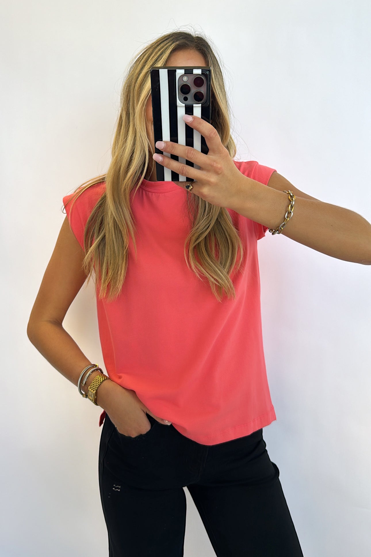 FUCHSIA V NECK SHORT SLEEVE TOP