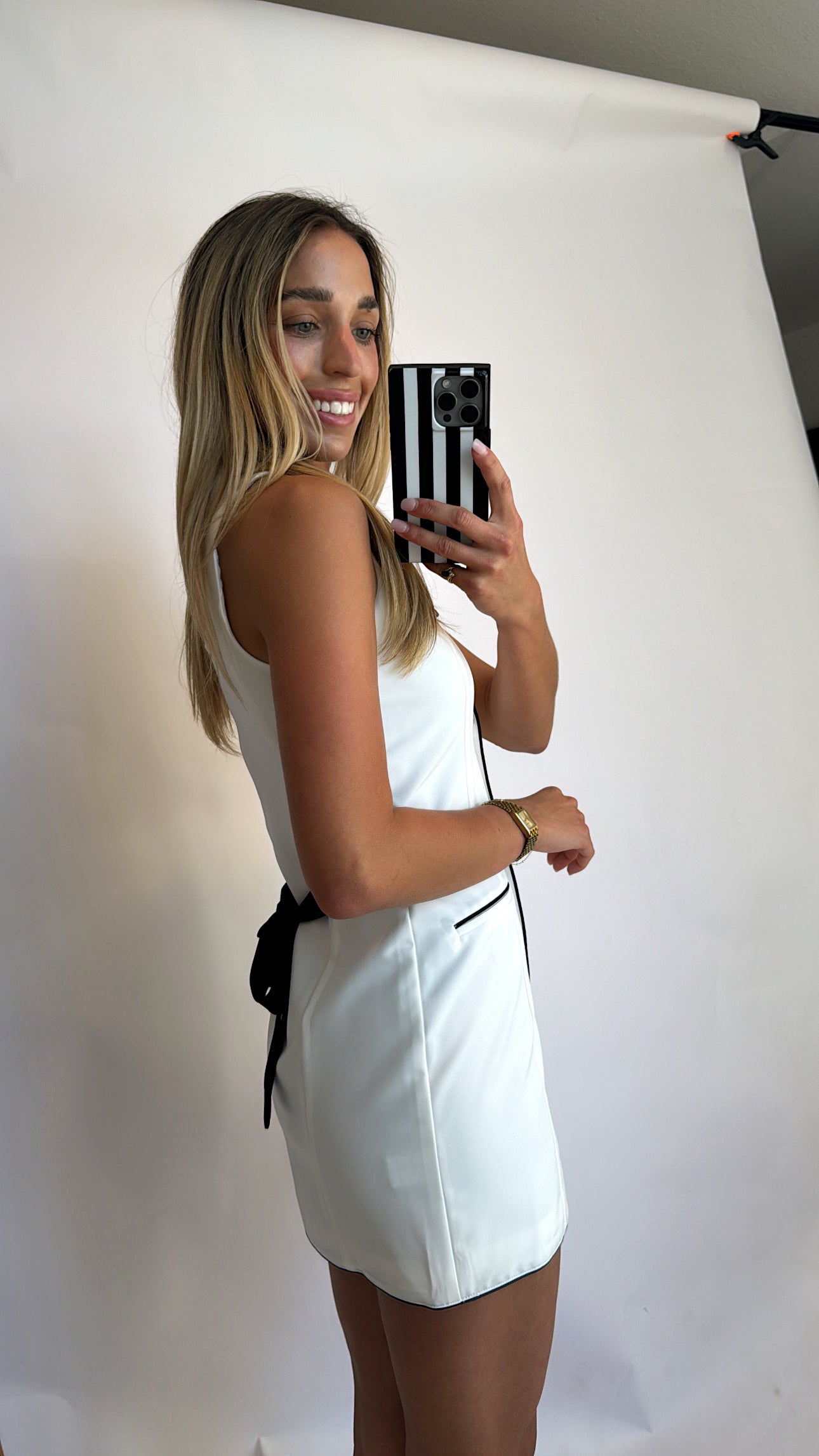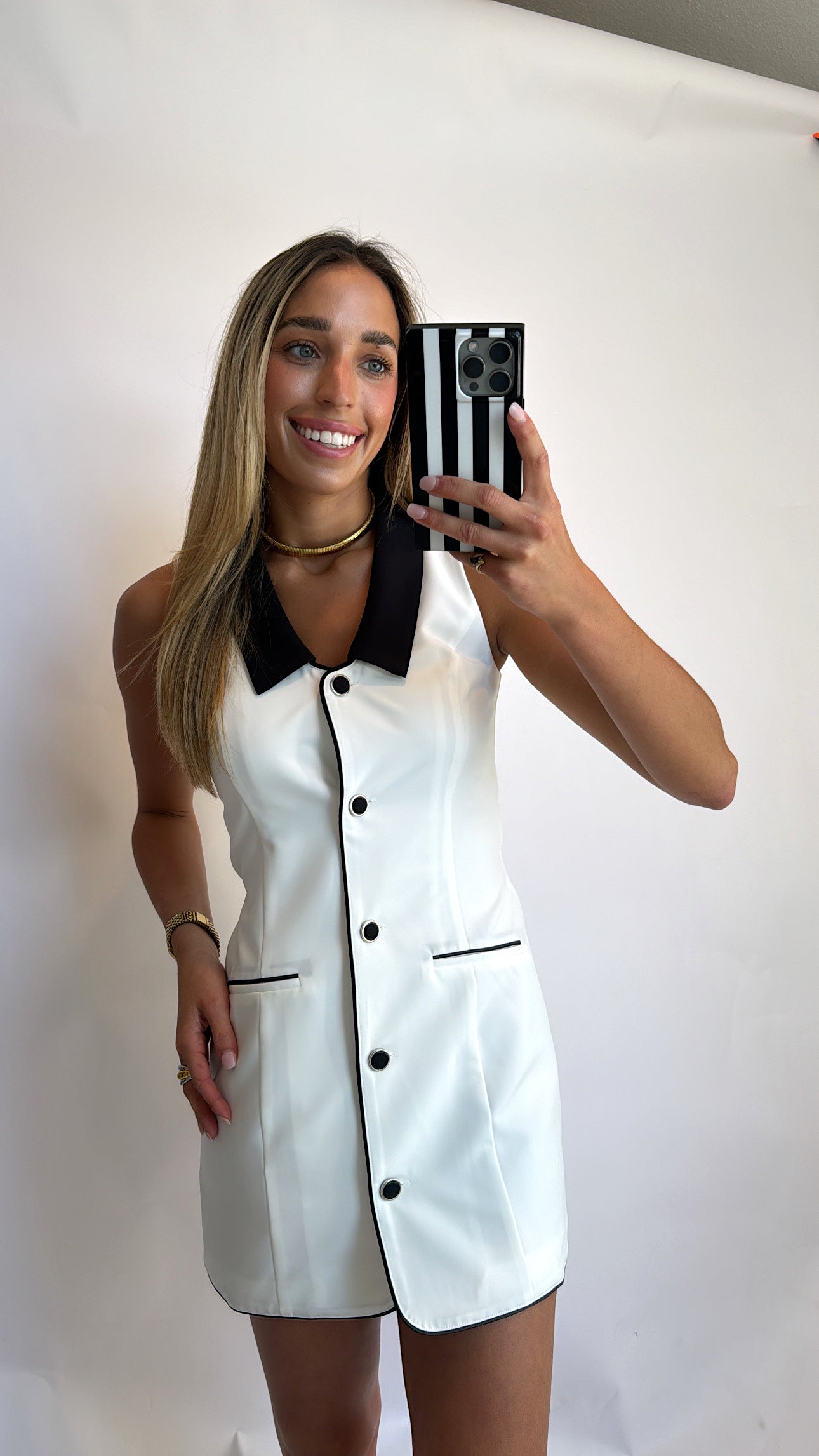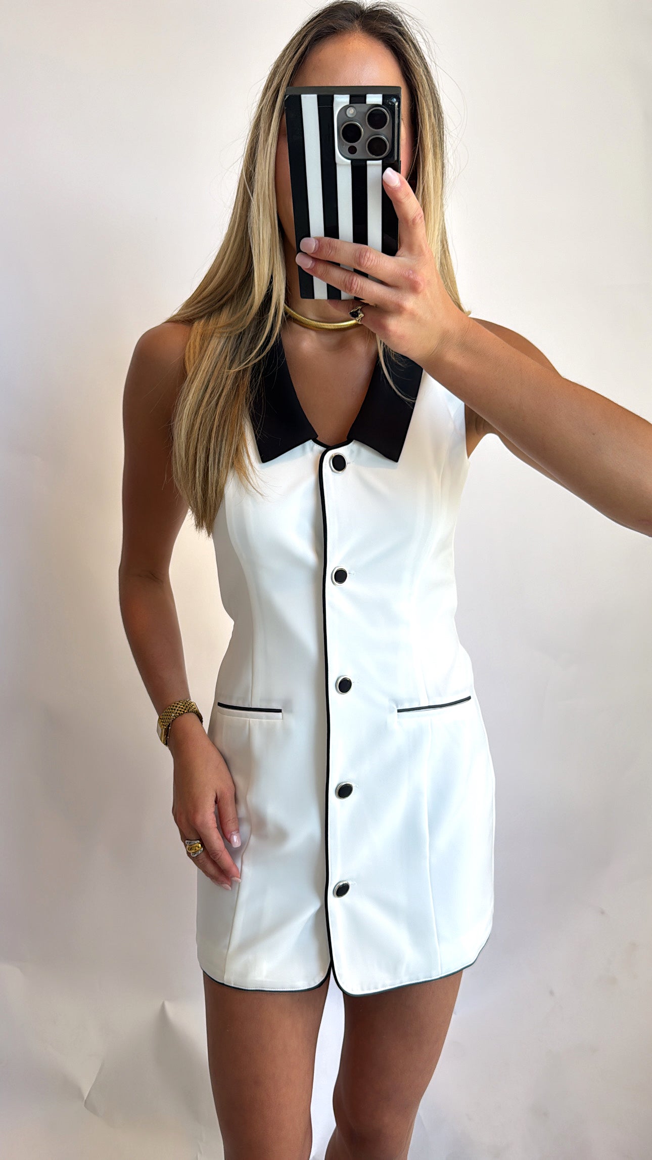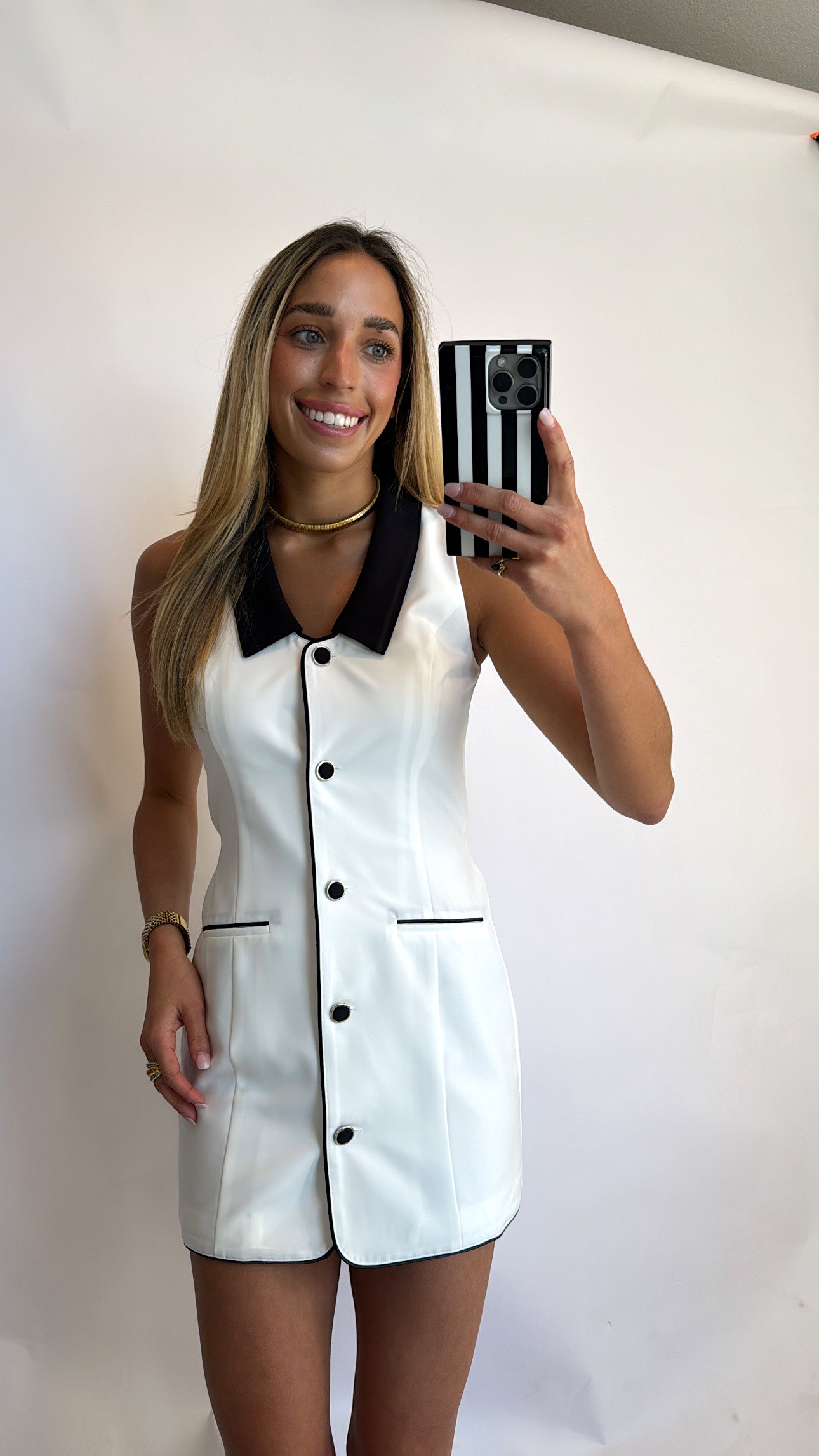 WHITE COLLAR PIPING DETAIL WOVEN DRESSS