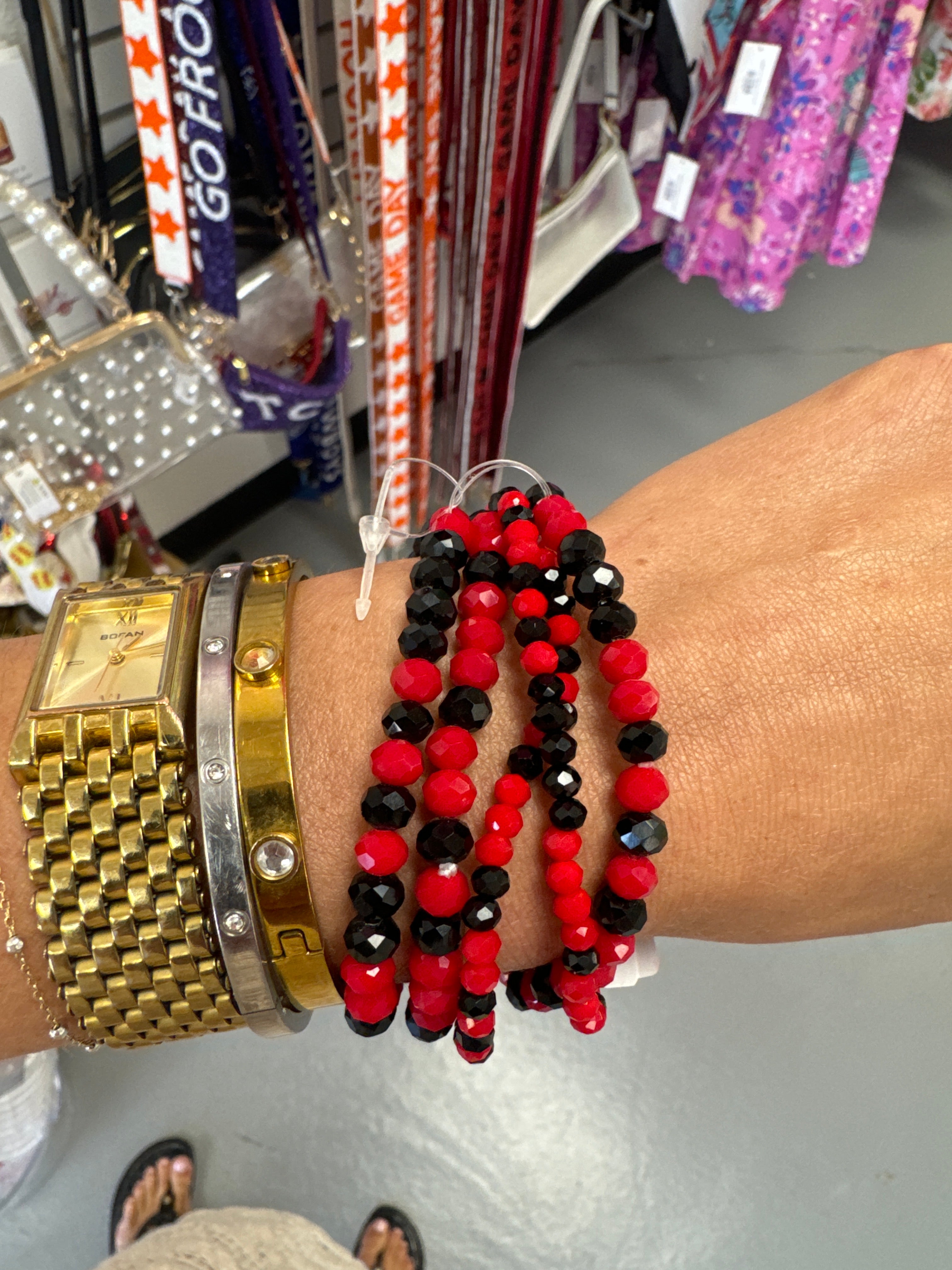 RED + BLACK BEADED BRACELET STACKS