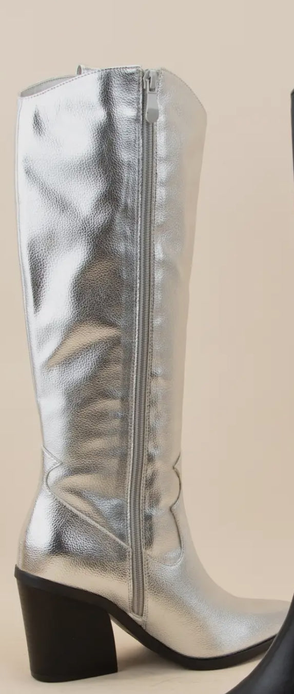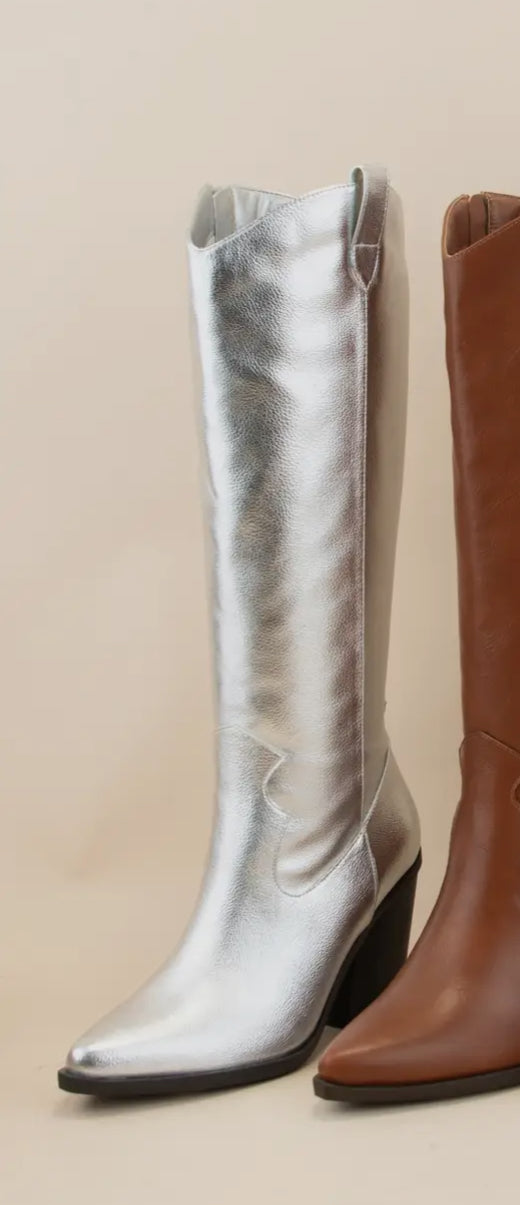 SILVER POINTED COWBOY TALL BOOTS