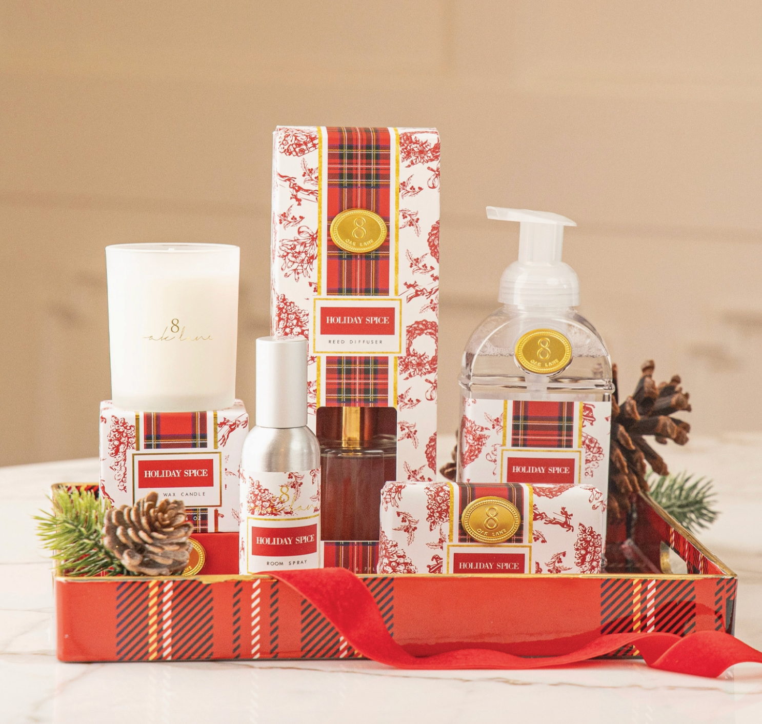 Introducing the enchanting Room Spray in our captivating Holiday Spice fragrance, a delightful blend of spicy cinnamon, sweet orange & warm clove notes. Enjoy these delicate notes that blend together to create a unique aroma that will enliven any room it's in! Crafted with meticulous attention to detail, this luxurious room spray lets you indulge in the aromas of a comforting environment while providing a soothing sense of exhilaration. This Room Spray is exquisitely packaged in a stunning & generously sized spray bottle featuring an intricate red toile block print, making it an elegant addition to your home decor or the perfect gift. Each spritz will refresh any room in the house with wonderful notes that bring a lightness to all areas of your daily life! Amazing gifts for birthdays, graduation, housewarming, & many more special occasions! 3.3 Fl Ounces Scent - Cinnamon, Orange & Clove Designed in the USA; Imported