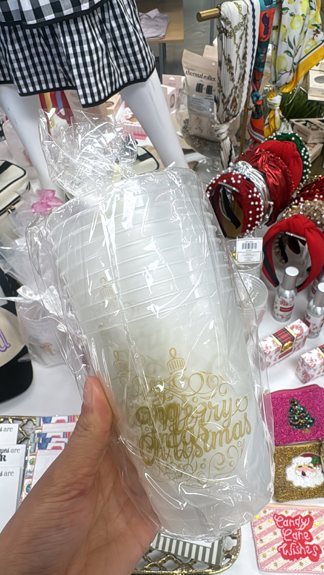 Merry Christmas Ornament Script Party Cups Frosted/Gold 16oz Set of 10