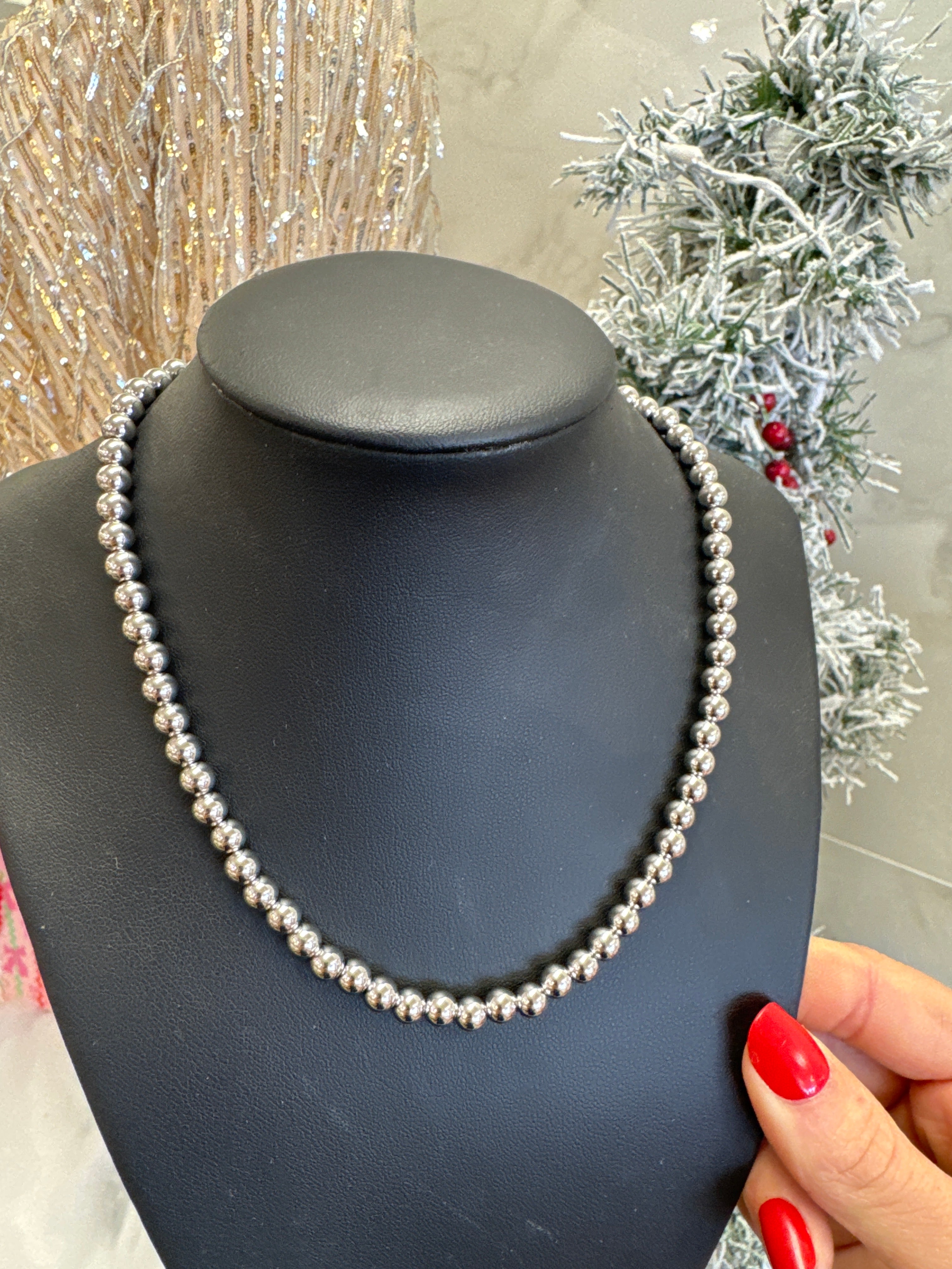 SILVER 6MM BEADED NECKLACE - STERLING SILVER