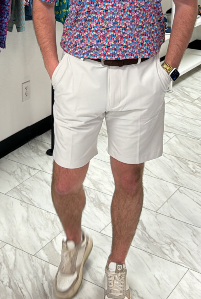 Our best-selling golf shorts, now available in an 8-inch length and can only be found Online Only.  Joining our renowned collection of the best shorts in golf, the Dunning Player Fit Woven 8" Short is built with cutting-edge performance fabric technology. Engineered with four-way stretch and moisture-wicking properties, they keep you dry and comfortable even on the hottest days. Whether you're teeing off at your favorite golf club or enjoying a leisurely day out, these versatile shorts offer unparalleled comfort and performance.