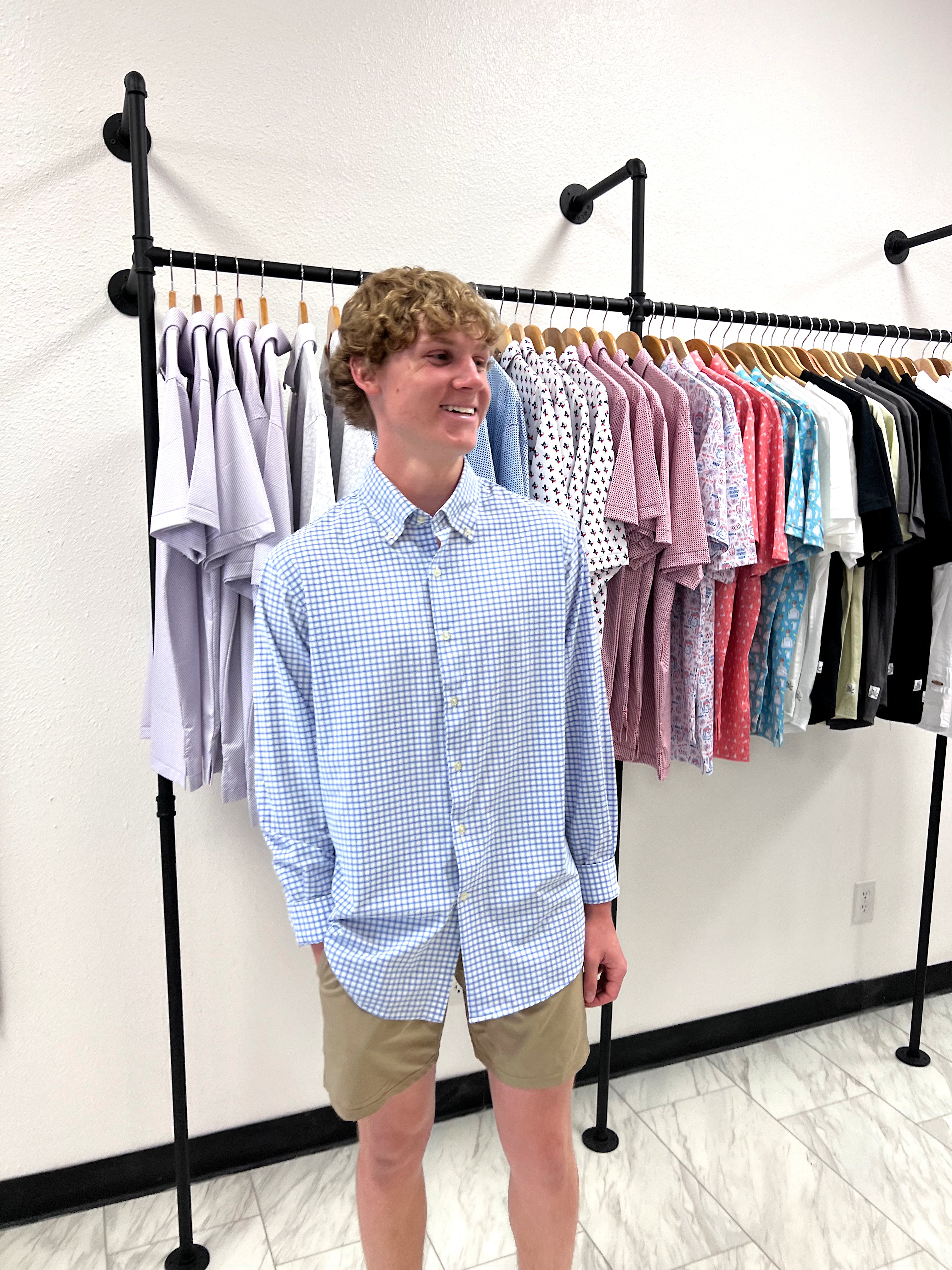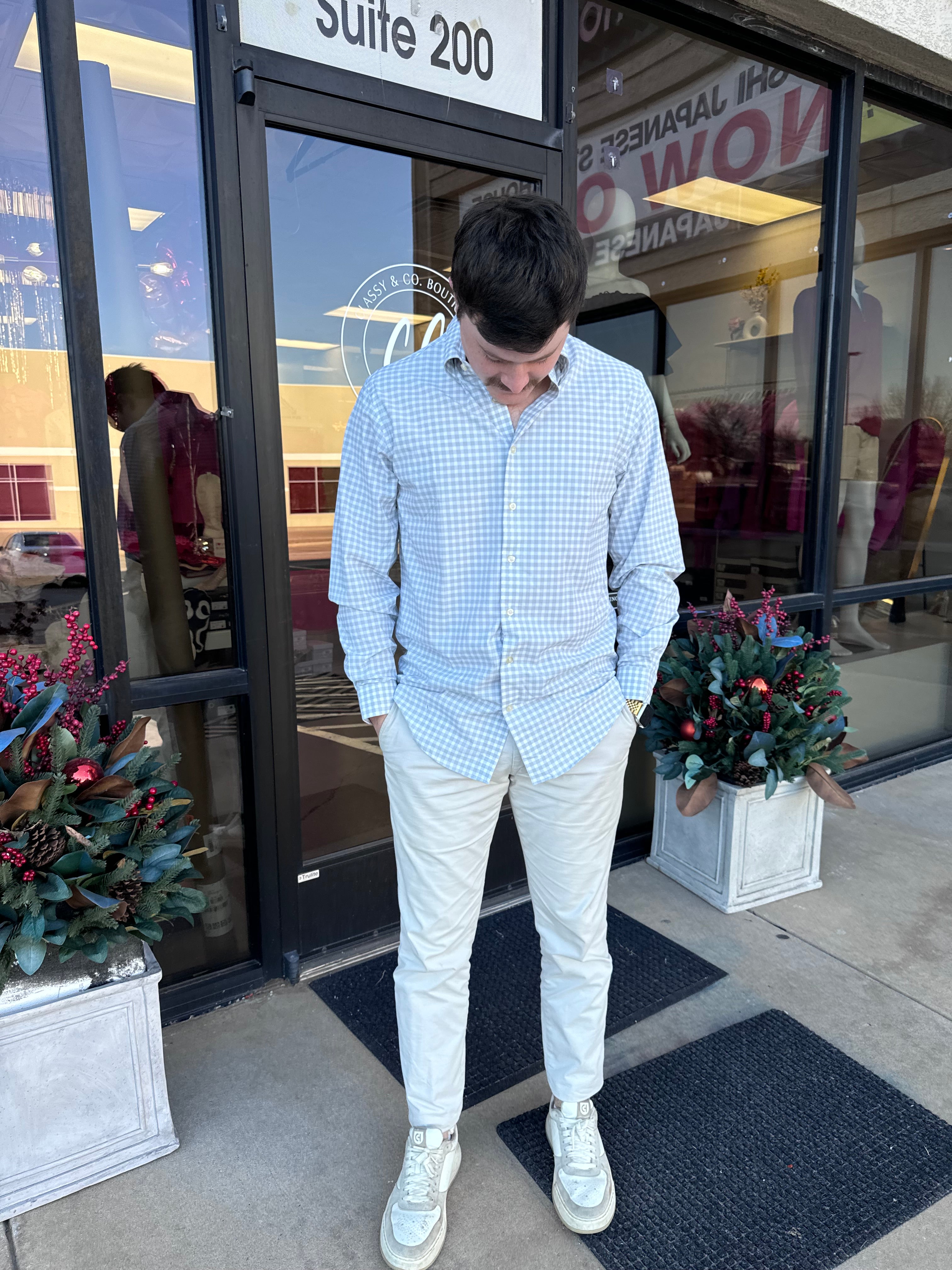 LIGHT BLUE GINGHAM OXFORD BUTTON DOWN POLO