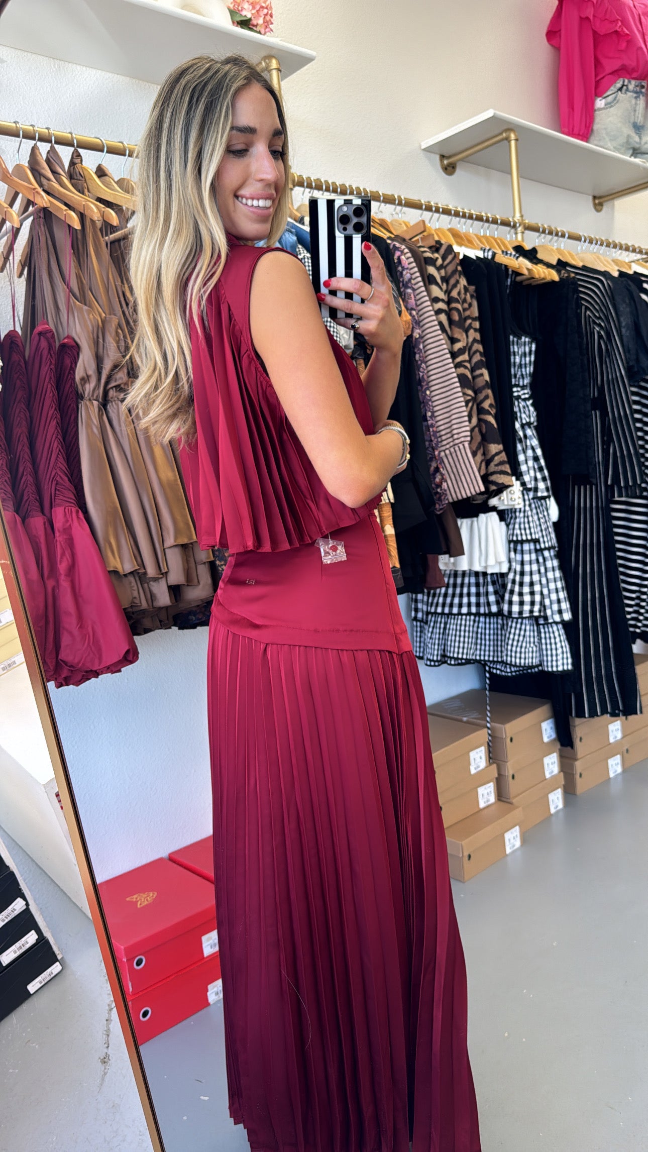 Burgundy Mock Neck Pleated Flow Set