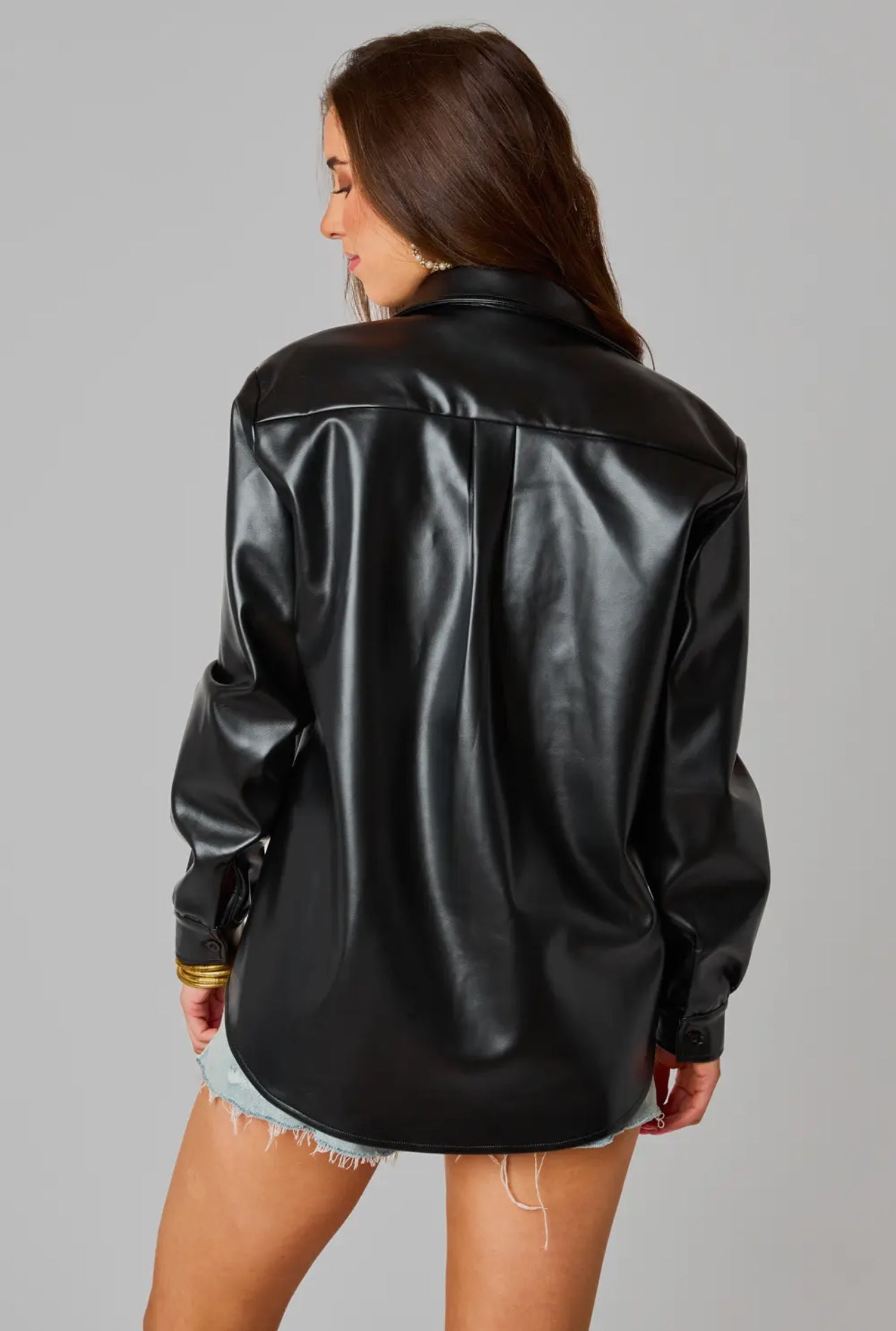 Buddy Love Brielle Black Vegan Leather Button Up Top