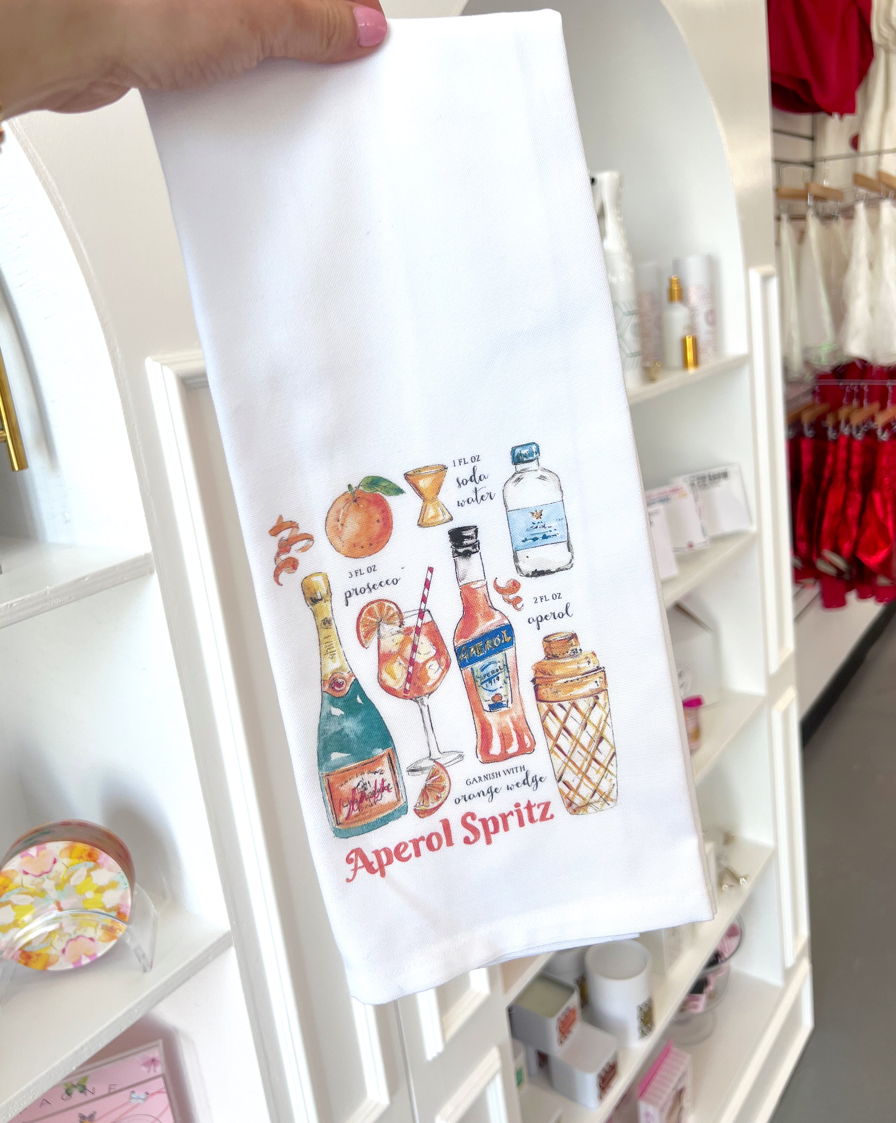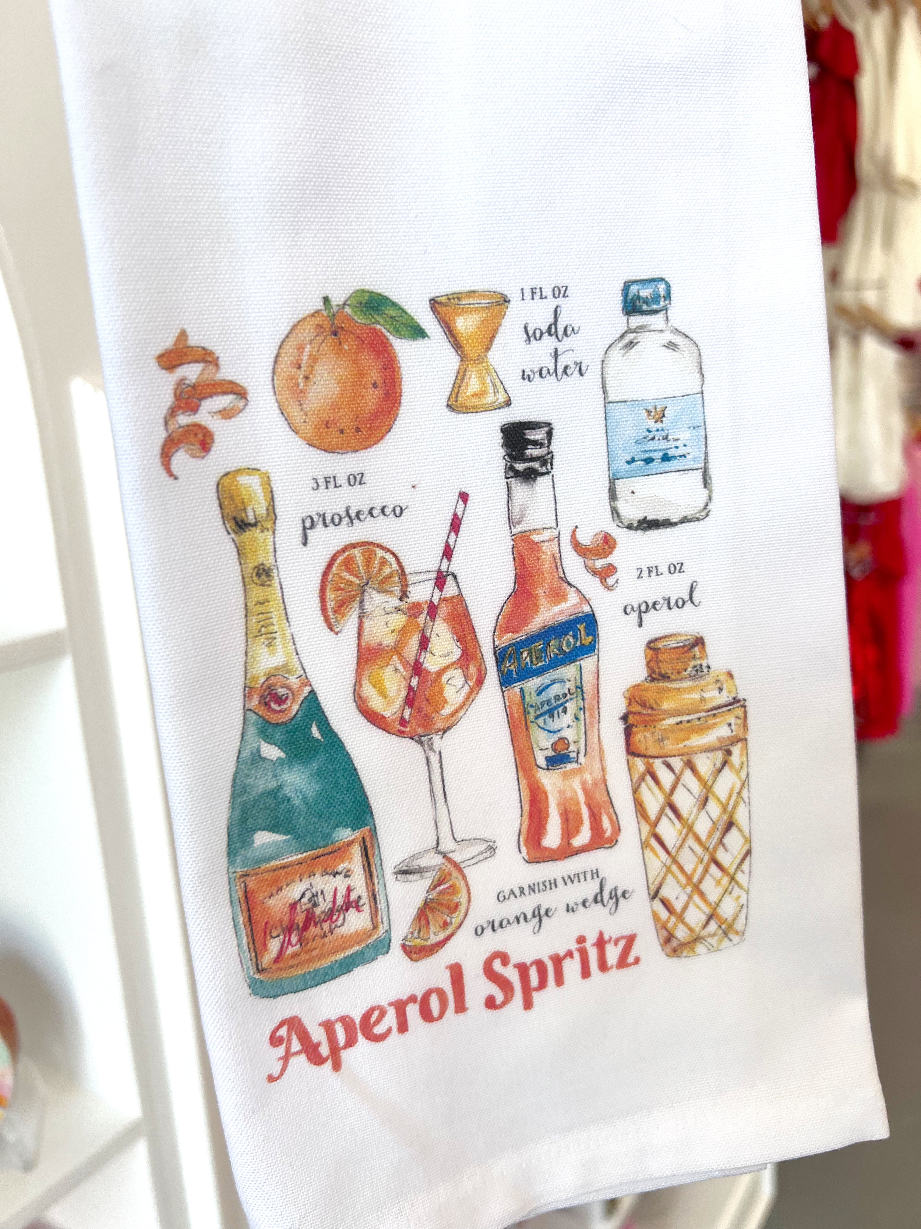 KITCHEN TOWEL HANDPAINTED APEROL SPRITZ RECIPE