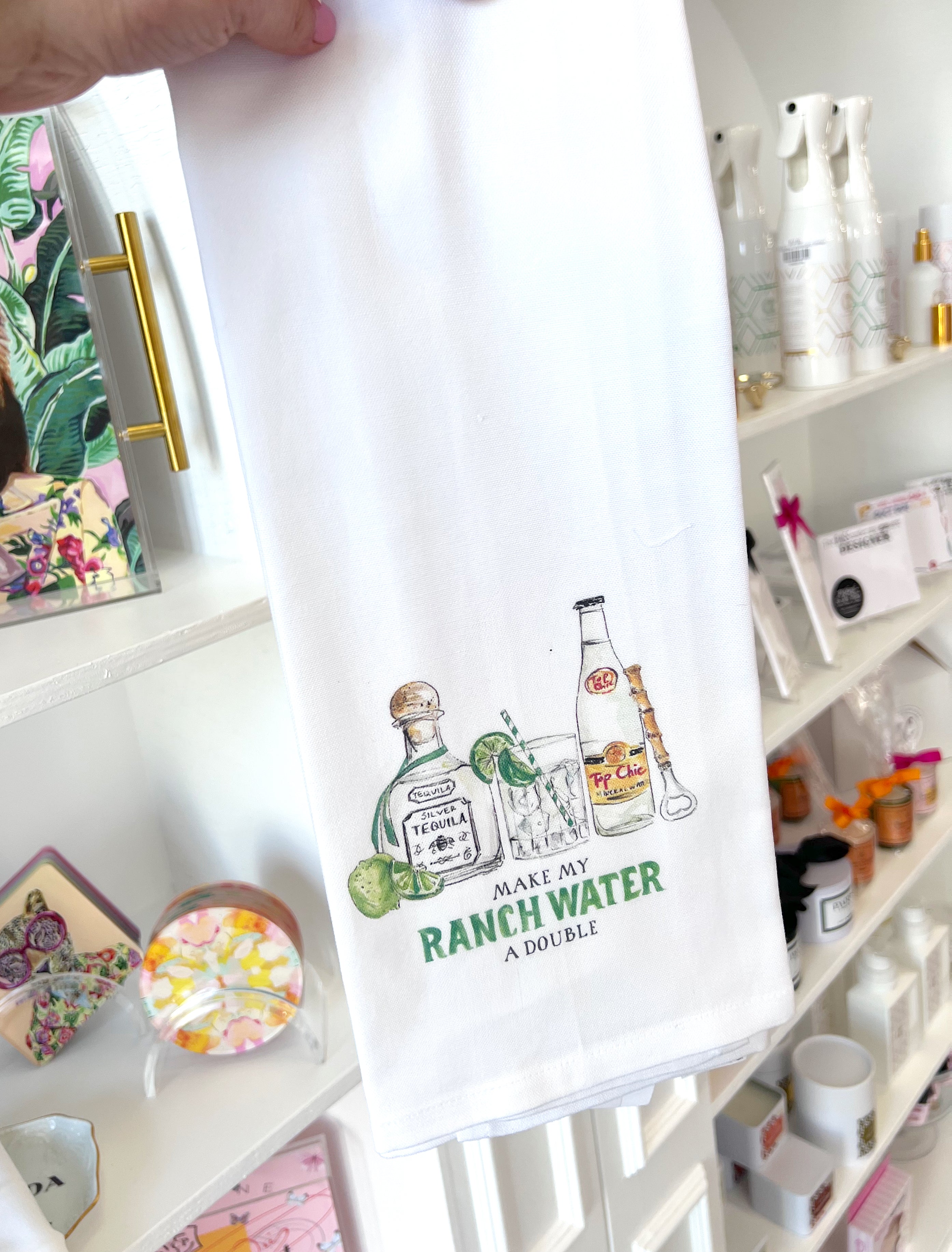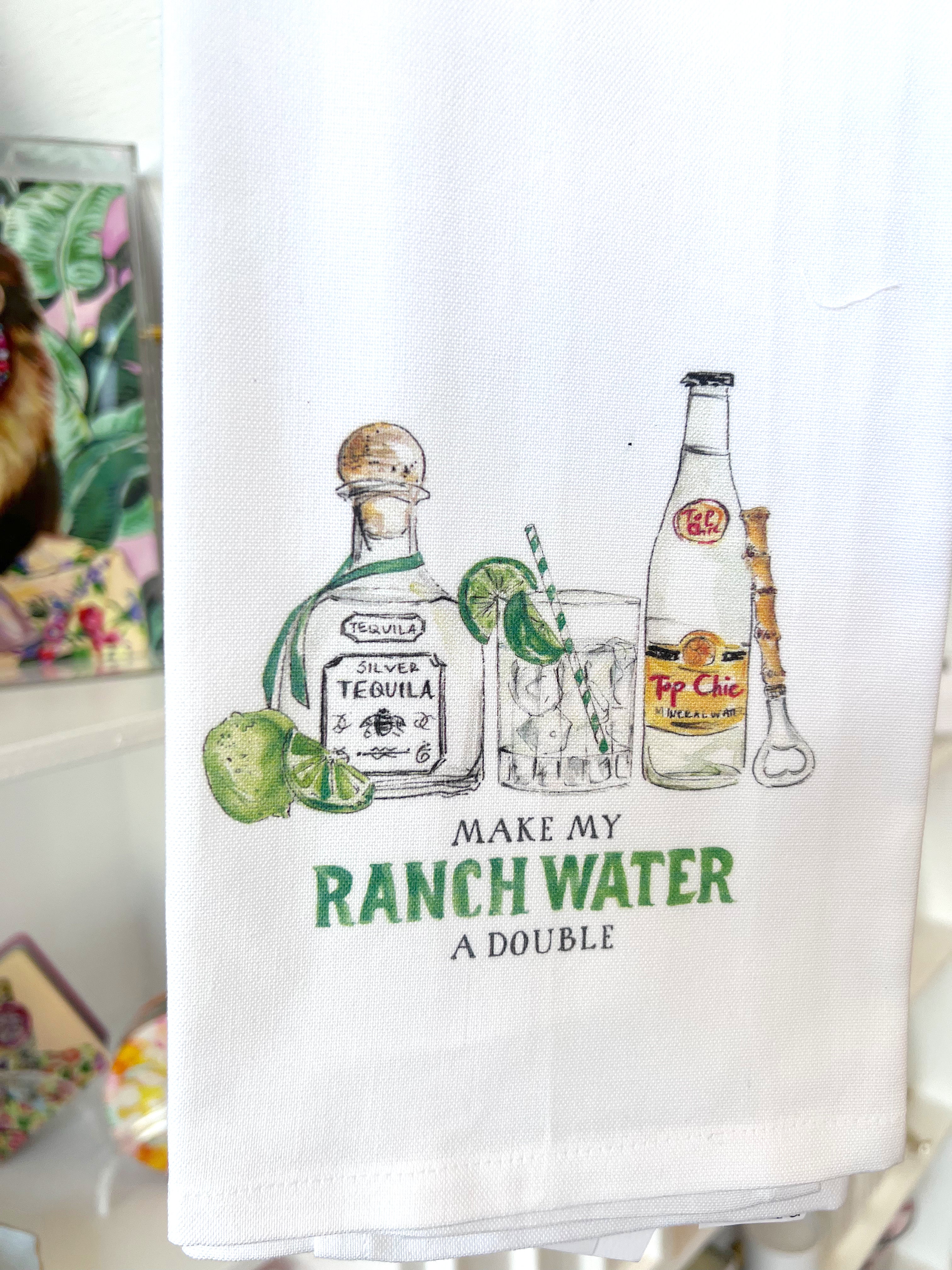 KITCHEN TOWEL HANDPAINTED MAKE MY RANCH WATER A DOUBLE