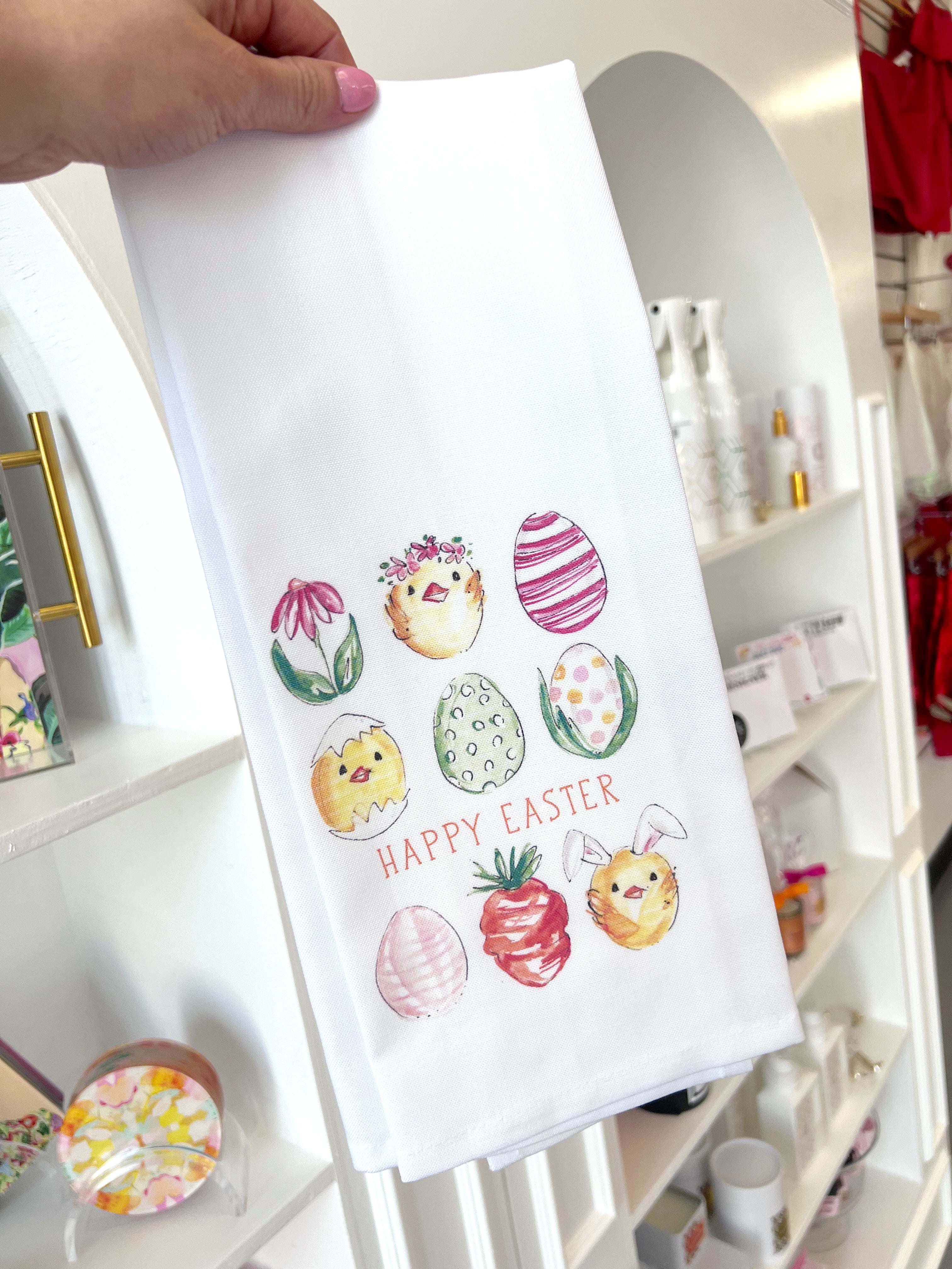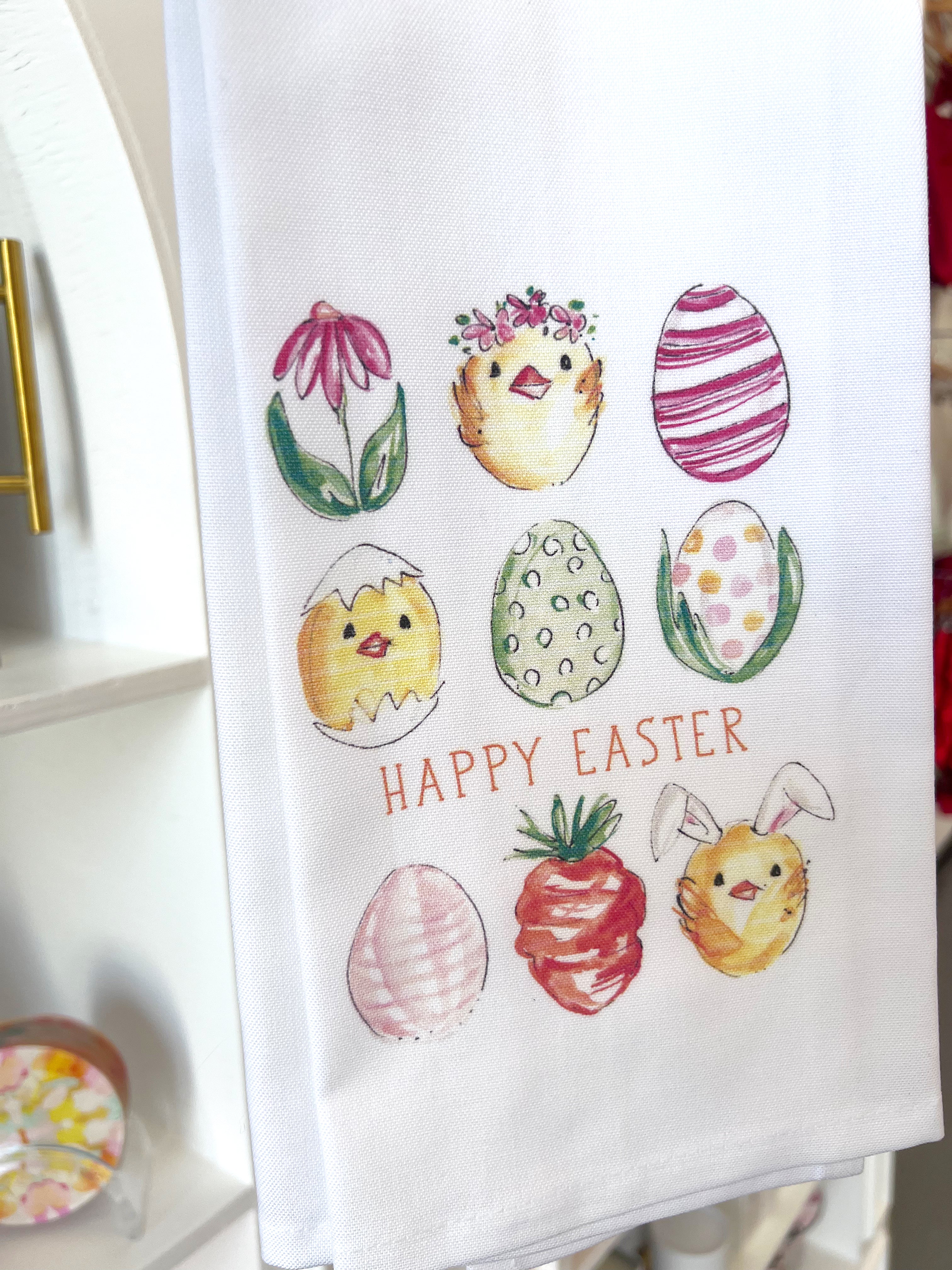 KITCHEN TOWEL HANDPAINTED EASTER EGGS AND CHICKS