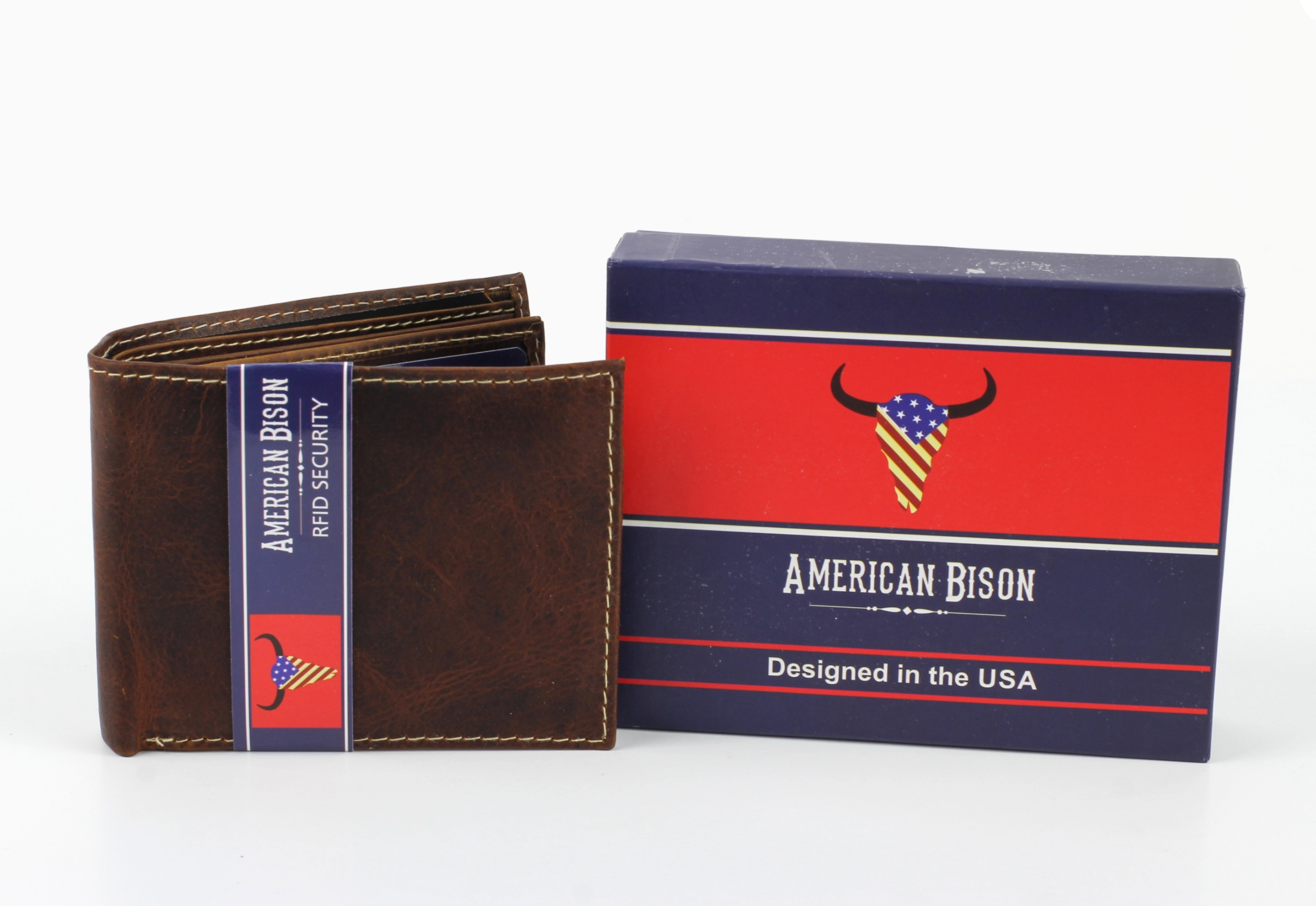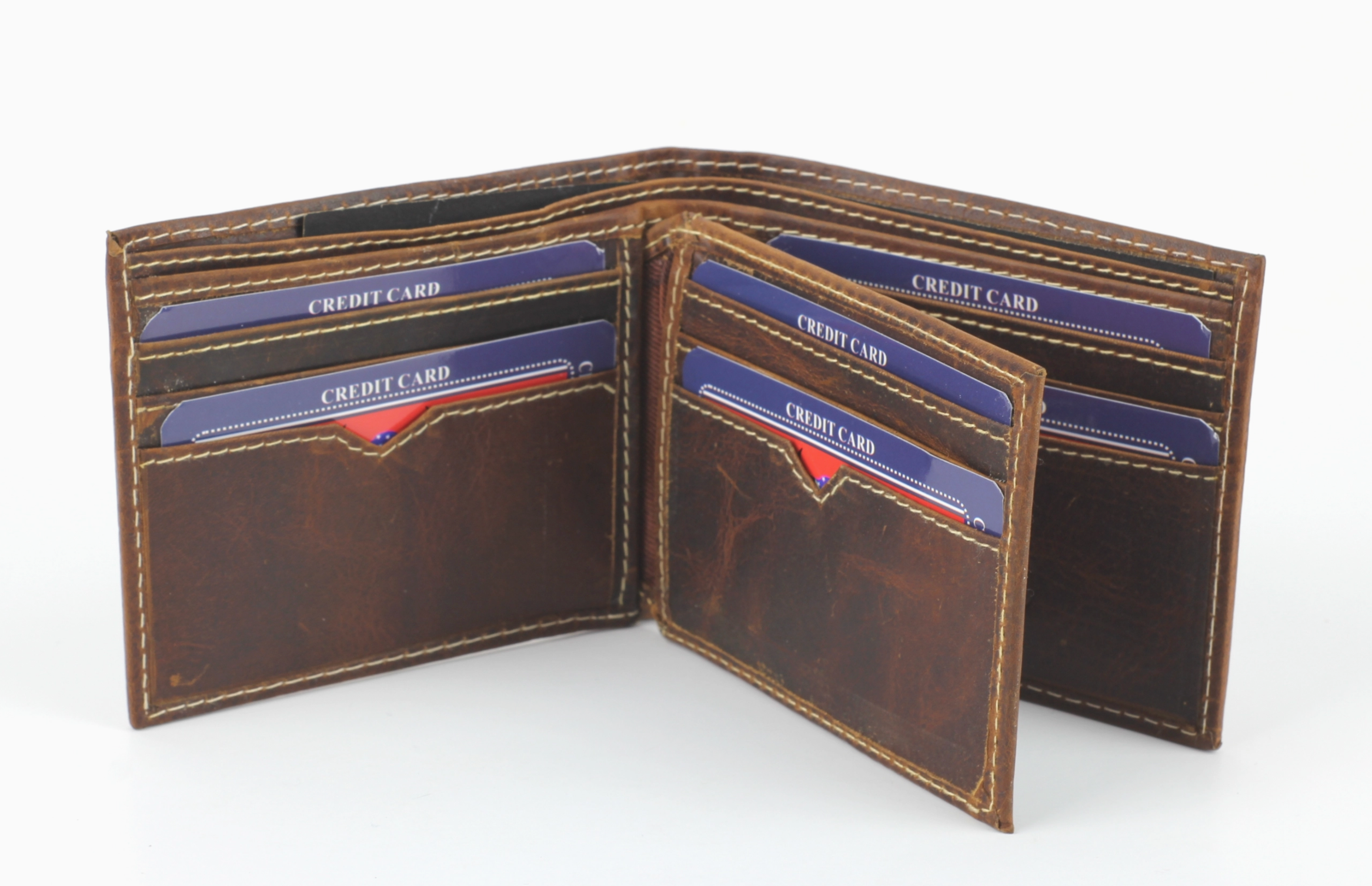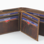 The wallet has two bill compartments, 9 credit card slots and an ID window.